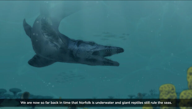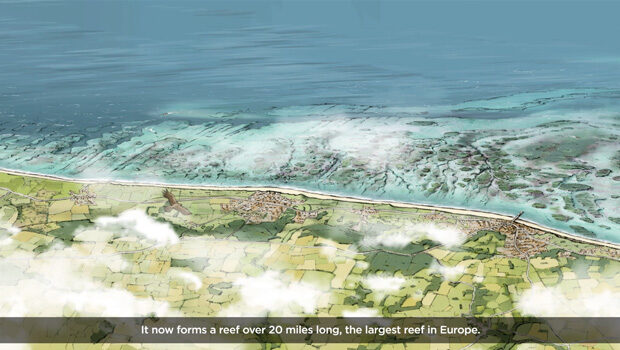 We used cut-up illustrations - some stock and some of our own - to animate scenes from prehistory. These were mixed with some stunning drone footage and underwater video shot by local companies Aerovisuals and Seasearch. These were blended together with some of our own footage, phone footage from local fossil hunters, stock footage, narration and original music to tell a seamless and engaging story.